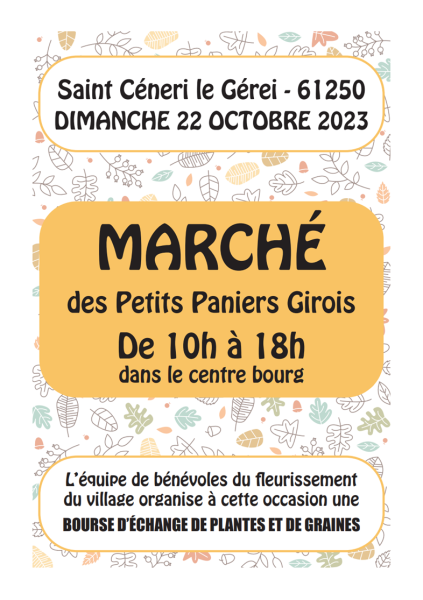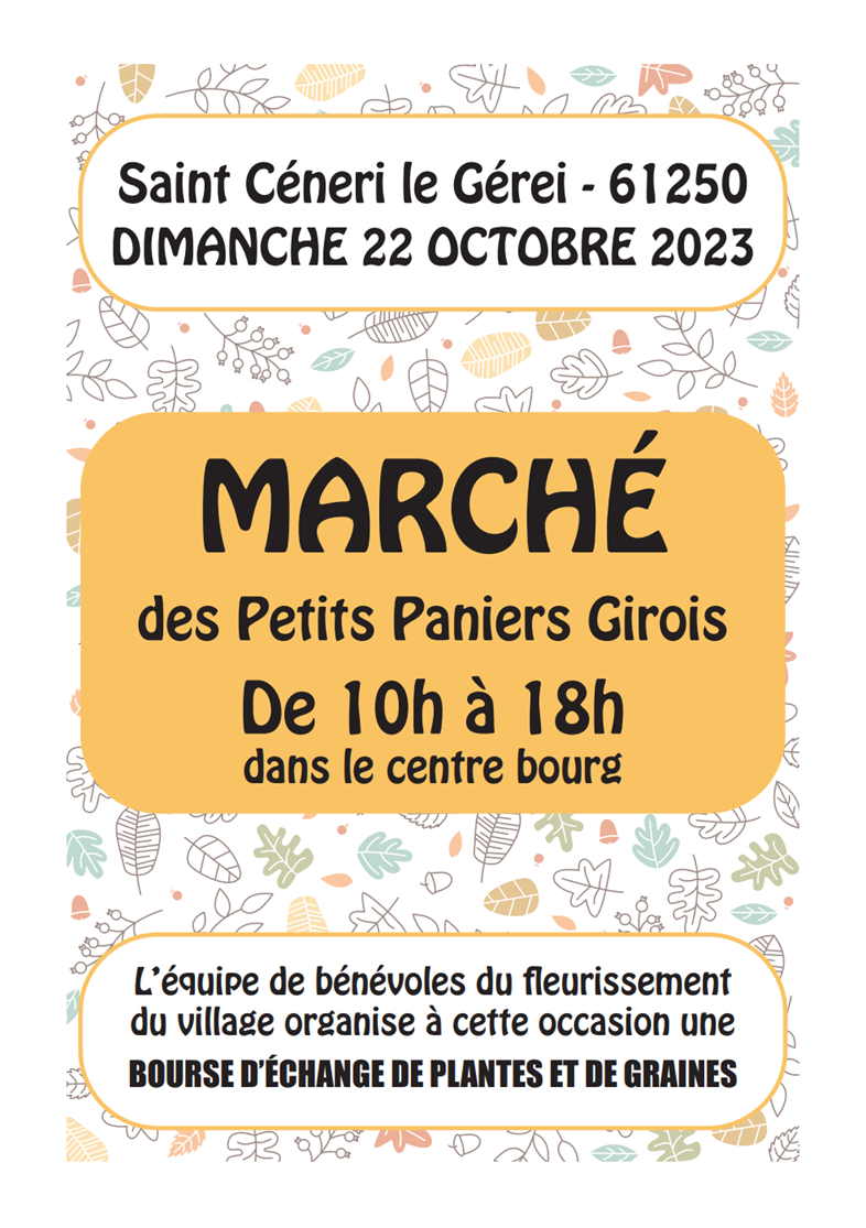 MARCHE « PETITS PANIERS GIROIS » ET BOURSE D’ECHANGE DE PLANTES ET DE GRAINES Accueil Évènements Cet évènement est terminé Date 22 octobre 2023 Heure 10 h 00 min - 18 h 00 min